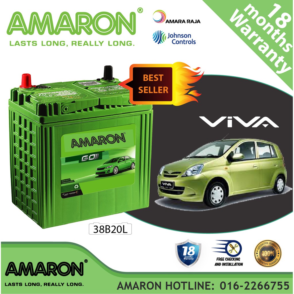 Perodua Viva Amaron Go 38b20l Ns40zl Car Battery Bateri Kereta Shopee Malaysia